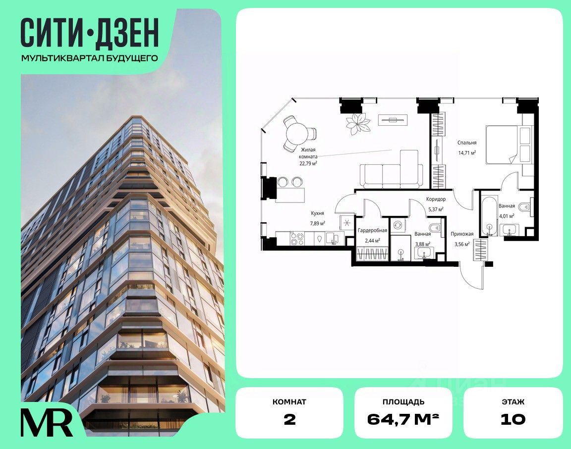 Продается 2-комнатная квартира от застройщика в жилом мультиквартале СИТИДЗЕН на 10-м этаже. Общая площадь лота составляет 64.65 м²