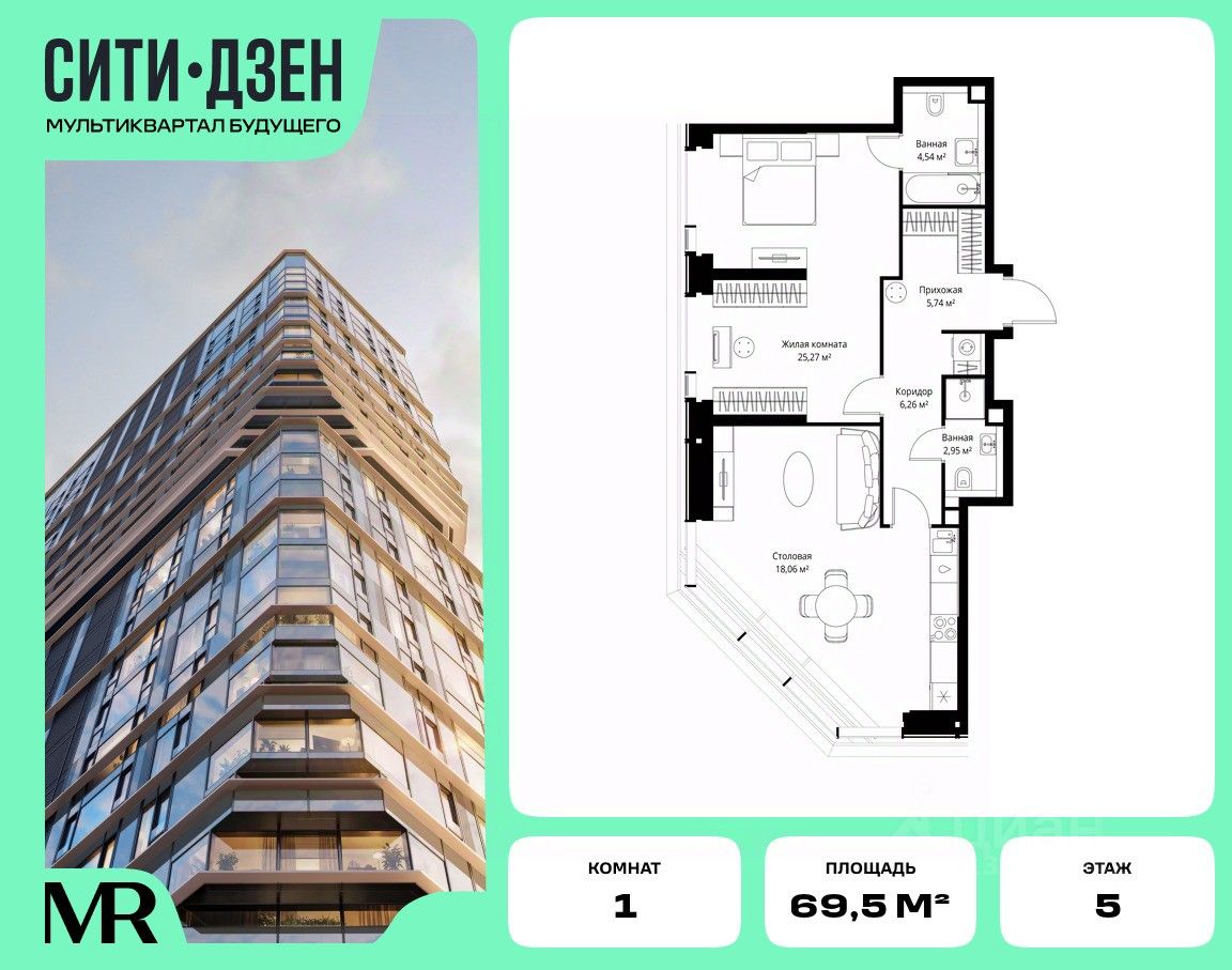 Продается 1-комнатная квартира от застройщика в жилом мультиквартале СИТИДЗЕН на 5-м этаже. Общая площадь лота составляет 69.51 м²
