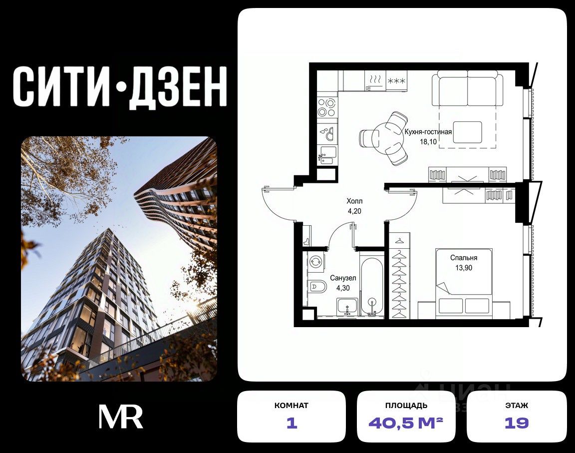 Продается 1-комнатная квартира от застройщика в жилом мультиквартале СИТИДЗЕН на 19-м этаже в корпусе #7. Общая площадь лота составляет 40.50 м²