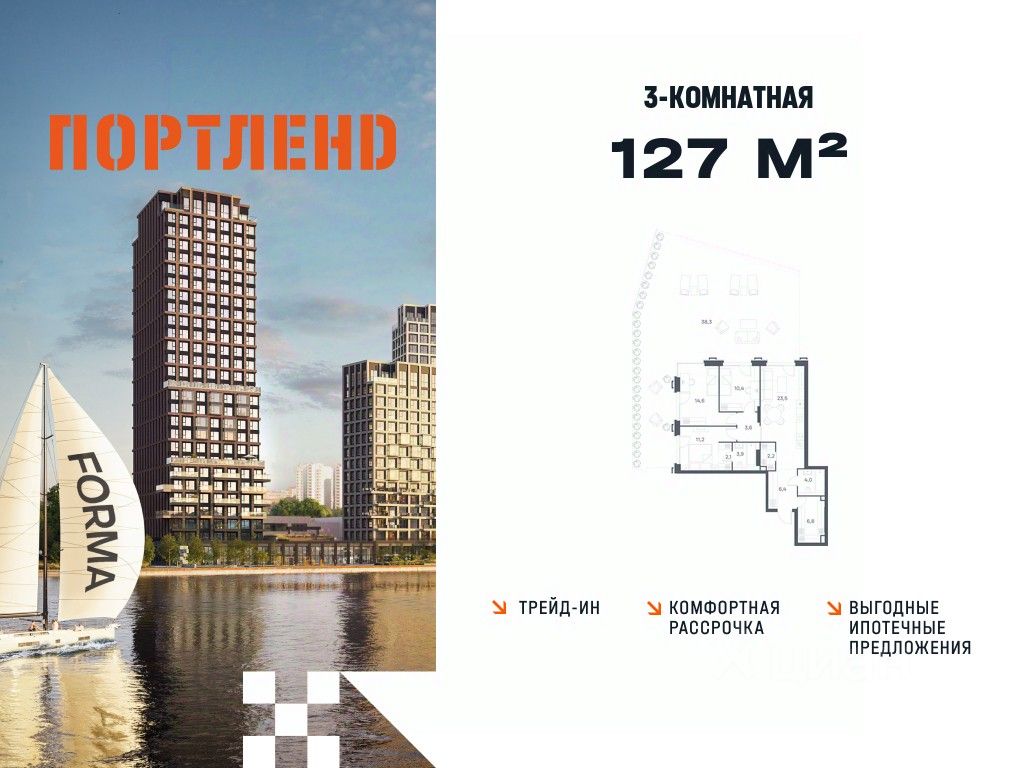 Цены указаны с условием 100% оплаты и стандартной ипотеки. Продаётся 3-к. квартира, 2 этаж в жилом комплексе бизнес-класса ПОРТЛЕНД от девелопера FORMA. ЖК расположен на берегу Москвы-реки в северной части района Печатники в акватории Южного речного порта. Основные преимущества проекта: • Самая протяженная береговая линия реки в Москве 13 км. • Вид на реку в сторону запада панорамные окна на самое широкое водное пространство Москва-реки (900 м) и на закат. • 95% квартир с видом на воду. • К ПОРТЛЕНД не примыкает крупных автомагистралей - отсутствие фонового шума дорог. • В перспективе ближайших 11 лет на территории района запланировано грандиозное преобразование и комплексное развитие. • Собственная набережная длиной 412 м., которая после завершения строительства сомкнется с эко-парком Печатники. • Прямой выход к воде и отсутствие проезжей части между ПОРТЛЕНД и береговой линией. • Инфраструктурное разнообразие: супермаркеты, крупные торговые центры, рестораны, кафе, фитнес-клубы, бьюти-салоны, компании сферы услуг и многое другое. • Собственная школа на 300 мест и детский сад на 275 мест. • Паркинг на 650 м/м • Транспортная вседоступность: метро, авто, велосипед, речной трамвай, канатная дорога • 15 мин. пешком до м. Печатники, 15 мин. на авто до ТТК, 20 минут на авто до Садового кольца