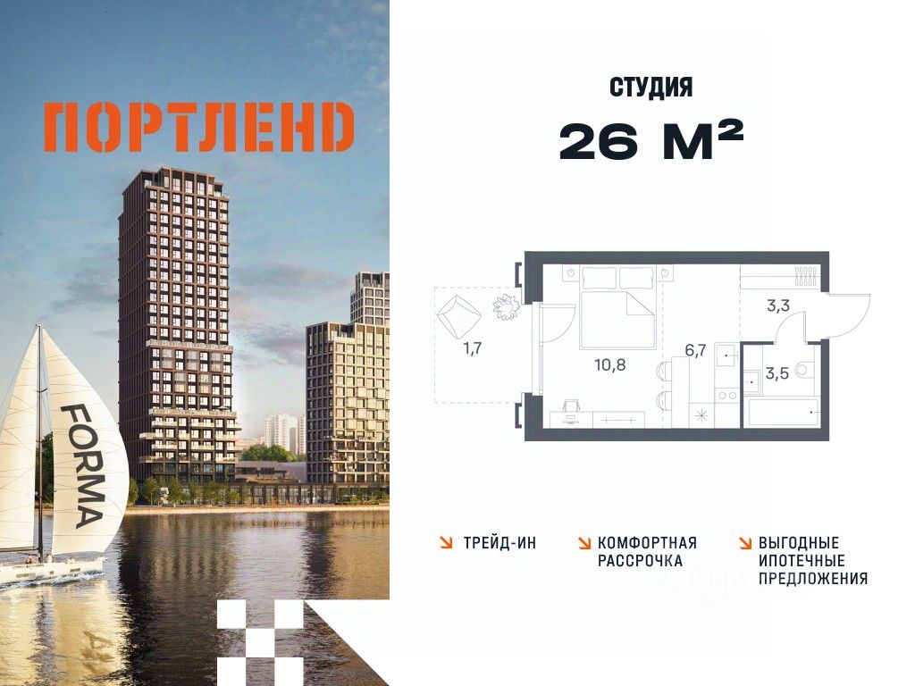 Цены указаны с условием 100% оплаты и стандартной ипотеки. Продаётся студия, 2 этаж в жилом комплексе бизнес-класса ПОРТЛЕНД от девелопера FORMA. ЖК расположен на берегу Москвы-реки в северной части района Печатники в акватории Южного речного порта. Основные преимущества проекта: • Самая протяженная береговая линия реки в Москве 13 км. • Вид на реку в сторону запада панорамные окна на самое широкое водное пространство Москва-реки (900 м) и на закат. • 95% квартир с видом на воду. • К ПОРТЛЕНД не примыкает крупных автомагистралей - отсутствие фонового шума дорог. • В перспективе ближайших 11 лет на территории района запланировано грандиозное преобразование и комплексное развитие. • Собственная набережная длиной 412 м., которая после завершения строительства сомкнется с эко-парком Печатники. • Прямой выход к воде и отсутствие проезжей части между ПОРТЛЕНД и береговой линией. • Инфраструктурное разнообразие: супермаркеты, крупные торговые центры, рестораны, кафе, фитнес-клубы, бьюти-салоны, компании сферы услуг и многое другое. • Собственная школа на 300 мест и детский сад на 275 мест. • Паркинг на 650 м/м • Транспортная вседоступность: метро, авто, велосипед, речной трамвай, канатная дорога • 15 мин. пешком до м. Печатники, 15 мин. на авто до ТТК, 20 минут на авто до Садового кольца
