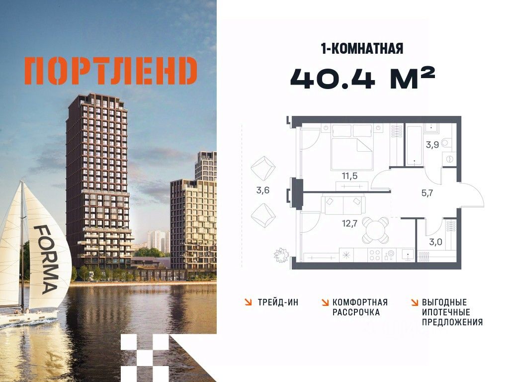 Цены указаны с условием 100% оплаты и стандартной ипотеки. Продаётся 1-к. квартира, 2 этаж в жилом комплексе бизнес-класса ПОРТЛЕНД от девелопера FORMA. ЖК расположен на берегу Москвы-реки в северной части района Печатники в акватории Южного речного порта. Основные преимущества проекта: • Самая протяженная береговая линия реки в Москве 13 км. • Вид на реку в сторону запада панорамные окна на самое широкое водное пространство Москва-реки (900 м) и на закат. • 95% квартир с видом на воду. • К ПОРТЛЕНД не примыкает крупных автомагистралей - отсутствие фонового шума дорог. • В перспективе ближайших 11 лет на территории района запланировано грандиозное преобразование и комплексное развитие. • Собственная набережная длиной 412 м., которая после завершения строительства сомкнется с эко-парком Печатники. • Прямой выход к воде и отсутствие проезжей части между ПОРТЛЕНД и береговой линией. • Инфраструктурное разнообразие: супермаркеты, крупные торговые центры, рестораны, кафе, фитнес-клубы, бьюти-салоны, компании сферы услуг и многое другое. • Собственная школа на 300 мест и детский сад на 275 мест. • Паркинг на 650 м/м • Транспортная вседоступность: метро, авто, велосипед, речной трамвай, канатная дорога • 15 мин. пешком до м. Печатники, 15 мин. на авто до ТТК, 20 минут на авто до Садового кольца