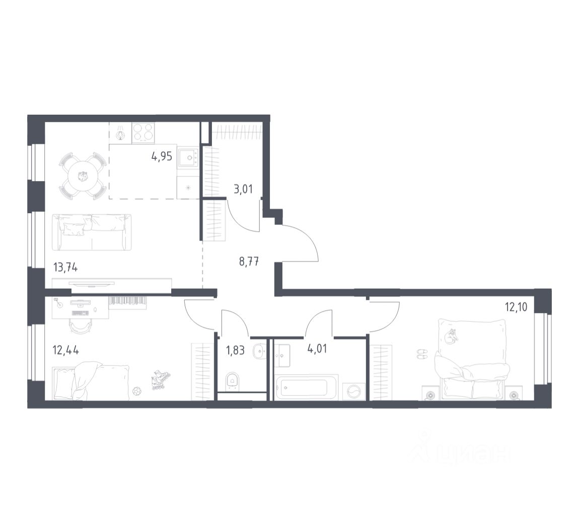 Строим кварталы для жизни с заботой о будущем. Предлагается 2-комнатная квартира комфорт-класса площадью 60,85 кв.м в корпусе 2 на 3-м этаже, в жилом комплексе "Квартал Домашний".