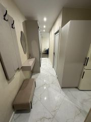 Капитальный дизайнерский ремонт делался под себя в 2026 году, квартира не сдавалась и не продавалась. Дорогой ламинат с износостойким покрытием класс 32. Керамогранит Laparet. Стены покрыты краской по технологии матовый шелк. Полностью заменена электропроводка. Протянут новый интернет кабель. Установлены розетки под видеокамеры и сигнализацию. Новый стеклопакет REHAU во всех комнатах, отличная шумоизоляция. По всей квартире сделан натяжной потолок со встроенными светильниками. Всю мебель и технику брали под себя, состояние идеальное, практически не пользовались, прожили пару месяцев. Электрощиток заведен в квартиру, можно на время отъезда удобно выключить всю электрику в доме или конкретную розетку.