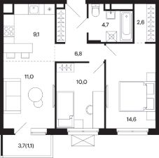 Продаётся 2-комнатная квартира в строящемся доме (з/у 11), срок сдачи: II-кв. 2027, общей площадью 59.9 кв.м., на 2 этаже. Новый жилой комплекс от застройщика "Садовое кольцо" расположен по адресу: Московская область, муниципальный округ Шаховская, посёлок городского типа Шаховская, улица Базаева