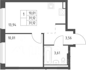 Площадь — 31,1 м²,
