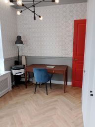 Вторая многофункцианальная комната с болшим угловым панорамным окном может быть как детской, так и кабинетом или гостевой с библиотекой на ваш вкус.