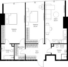 В продаже 2-комнатная квартира площадью 90.70 м² на 50-м этаже.