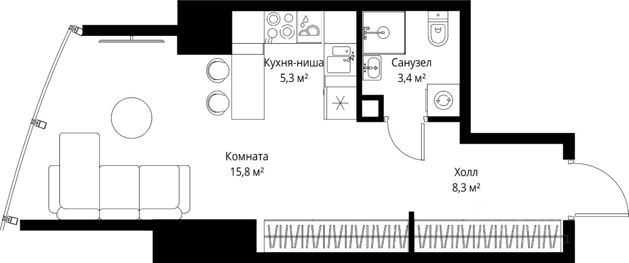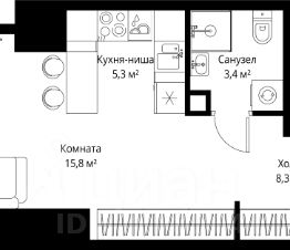 В продаже студия площадью 32.80 м² на 52-м этаже.