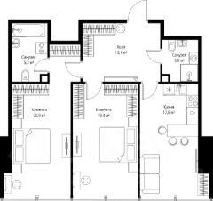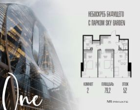 В продаже 2-комнатная квартира площадью 79.20 м² на 52-м этаже.