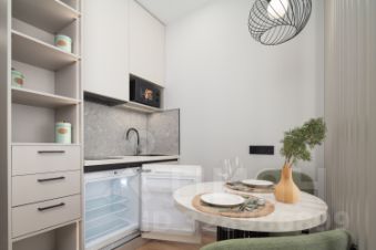 Студия полностью готова к заселению: функциональная планировка, качественный ремонт "под ключ", новая мебель и встроенная техника, надежная входная дверь, кондиционер включены в стоимость.