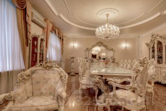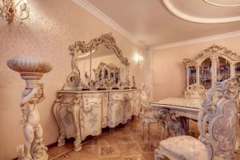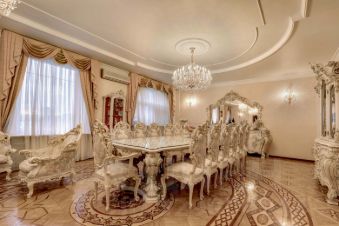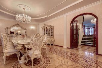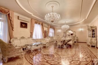 В квартире выполнен дорогостоящий ремонт из лучших импортных материалов. На полу художественный паркет ручной работы изготовлен из 3-х сортов дерева - дуб, сосна, вишня, люстры Сваровски, кухня и гостевой туалет из мрамора и оникса, лестница - мрамор, действующий камин из Итальянского мрамора, 3 уровня освещения, сантехника Италия ( Альбатрос), окна с шумоизоляцией, мансардные окна с бронированными стеклами, с системой очисткой воды, оборудованы внешними решетками, система открывания окон с секретом, открыть их снаружи невозможно, установлена система видео-наблюдения. Лестница ручной работы из итальянского мрамора - отдельное произведение искусства. Установлена сплит-система с 3-я кондиционерами. Большая ванная комната 17 кв.м отделана мрамором и ониксом, джакузи, финская сауна.