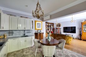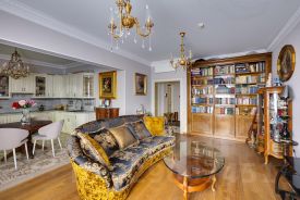 Предлагается 4-комнатная двухуровневая квартира 150 кв.м. на 9-м этаже с дизайнерским ремонтом и прекрасными видами во внутренний двор и на пруд.