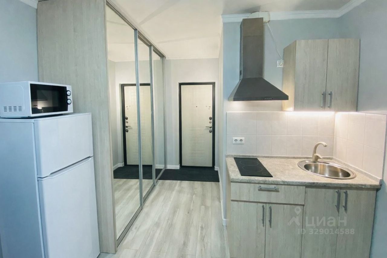Студия полностью готова к проживанию — выполнен хороший ремонт, есть мебель, кухня и техника (заезжай и живи без вложений).