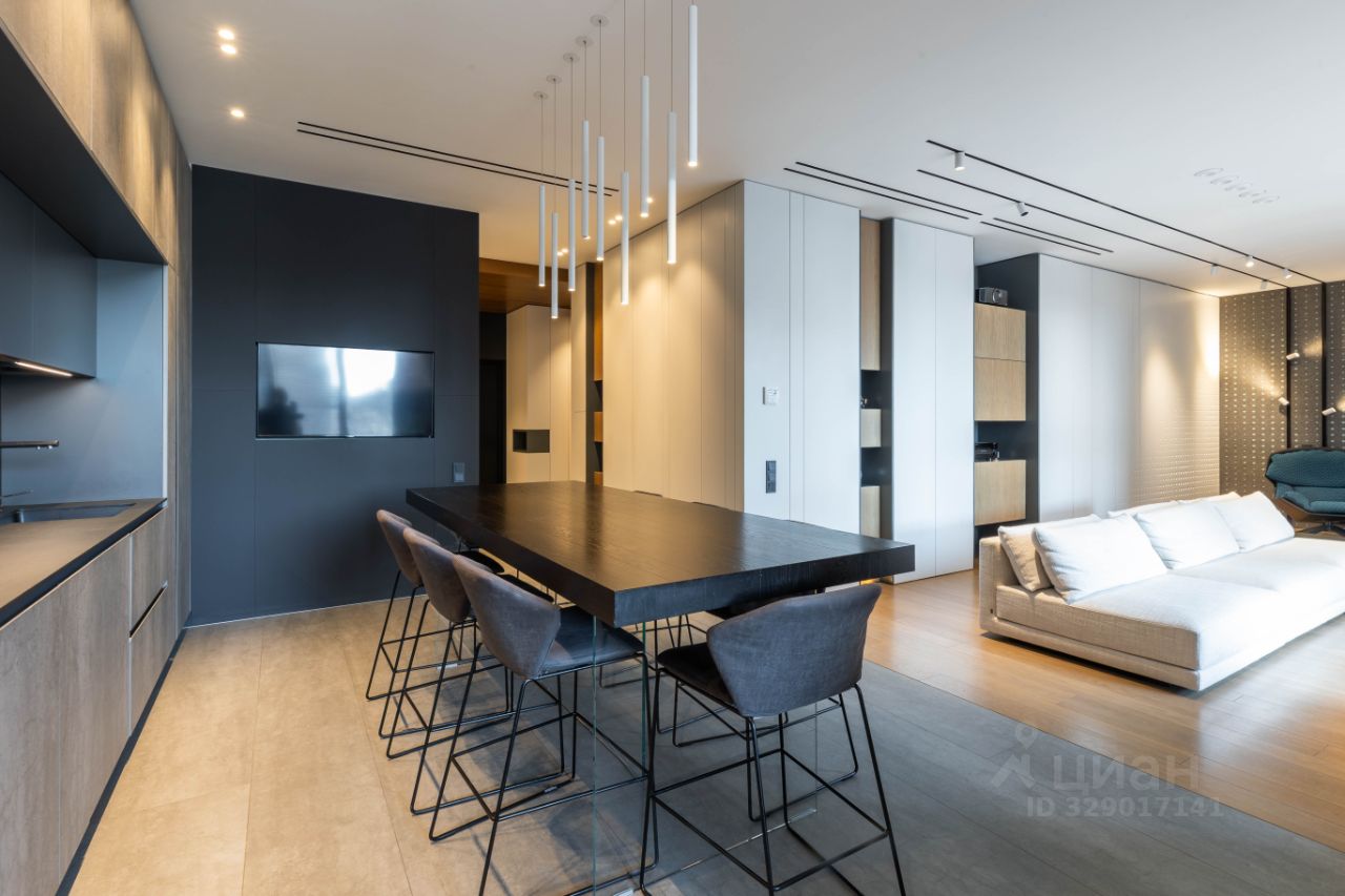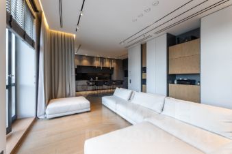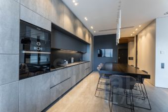 Дизайн выполнен в современном стиле с использованием таких материалов как: паркетная доска, штукатурка под покраску, скрытая система кондиционирования, система водоподготовки, теплые полы по всей площади, система глубокого хранения, звукоизоляция всей квартиры и спальных комнат.