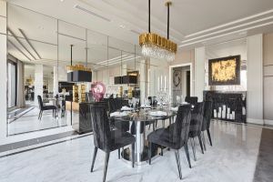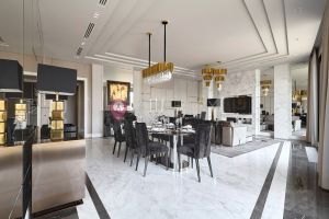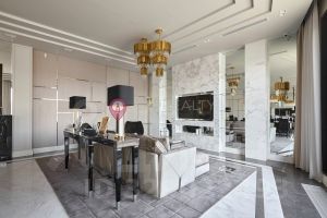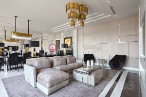 Интерьер выполнен в стиле Ralph Lauren c использованием европейских натуральных материалов. Мебель производства Италии. Во всей квартире ковры и люстры Fendi.