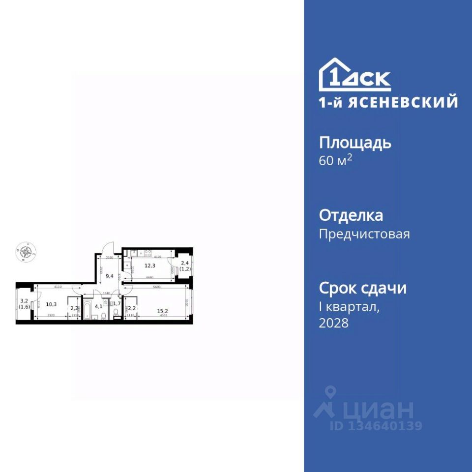 Продаётся 2-к квартира номер 242 общей площадью 60.2 кв.м. на 2-м этаже 18 этажного здания. Предчистовая отделка. Цена с учётом скидки.