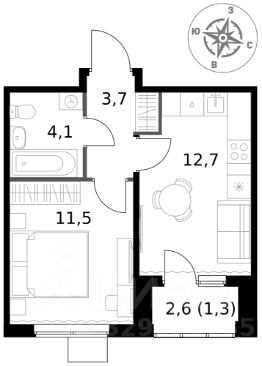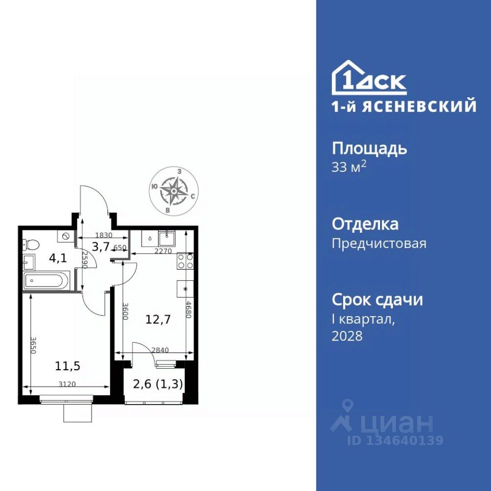 Продаётся 1-к квартира номер 703 общей площадью 33.3 кв.м. на 16-м этаже 18 этажного здания. Предчистовая отделка. Цена с учётом скидки.