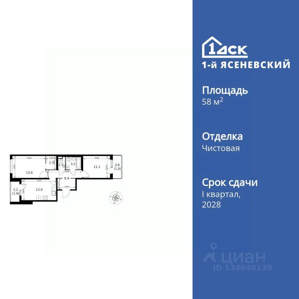 Продаётся 2-к квартира номер 829 общей площадью 58.1 кв.м. на 2-м этаже 18 этажного здания. Чистовая отделка. Цена с учётом скидки.