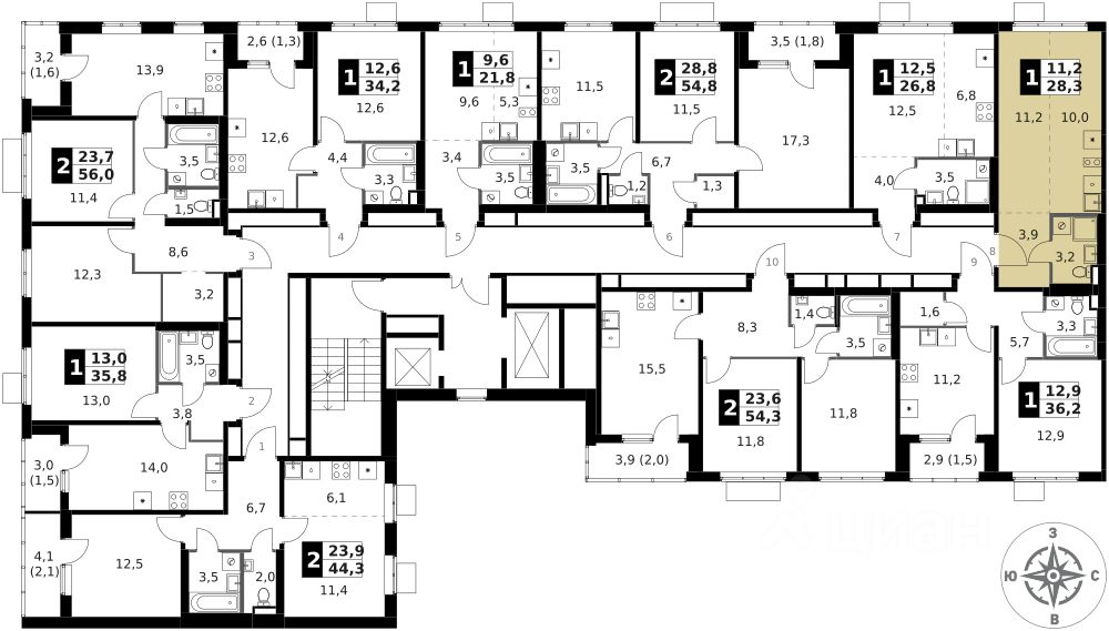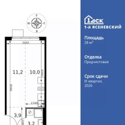 Продаётся квартира-студия номер 48 общей площадью 28.3 кв.м. на 6-м этаже 16 этажного здания. Предчистовая отделка. Цена с учётом скидки.