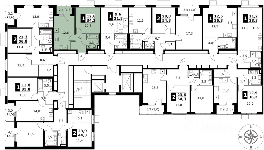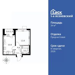 Продаётся 1-к квартира номер 84 общей площадью 34.2 кв.м. на 10-м этаже 16 этажного здания. Предчистовая отделка. Цена с учётом скидки.
