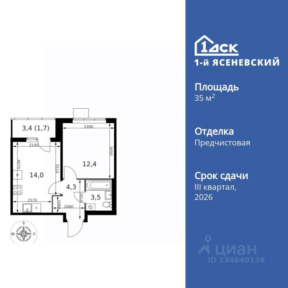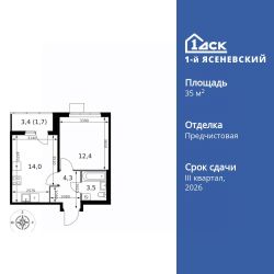 Продаётся 1-к квартира номер 300 общей площадью 35.9 кв.м. на 15-м этаже 18 этажного здания. Предчистовая отделка. Цена с учётом скидки.