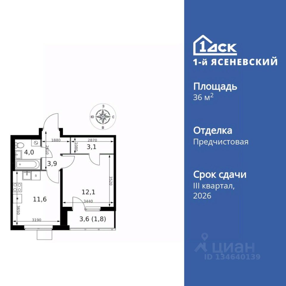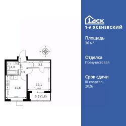 Продаётся 1-к квартира номер 740 общей площадью 36.5 кв.м. на 14-м этаже 18 этажного здания. Предчистовая отделка. Цена с учётом скидки.
