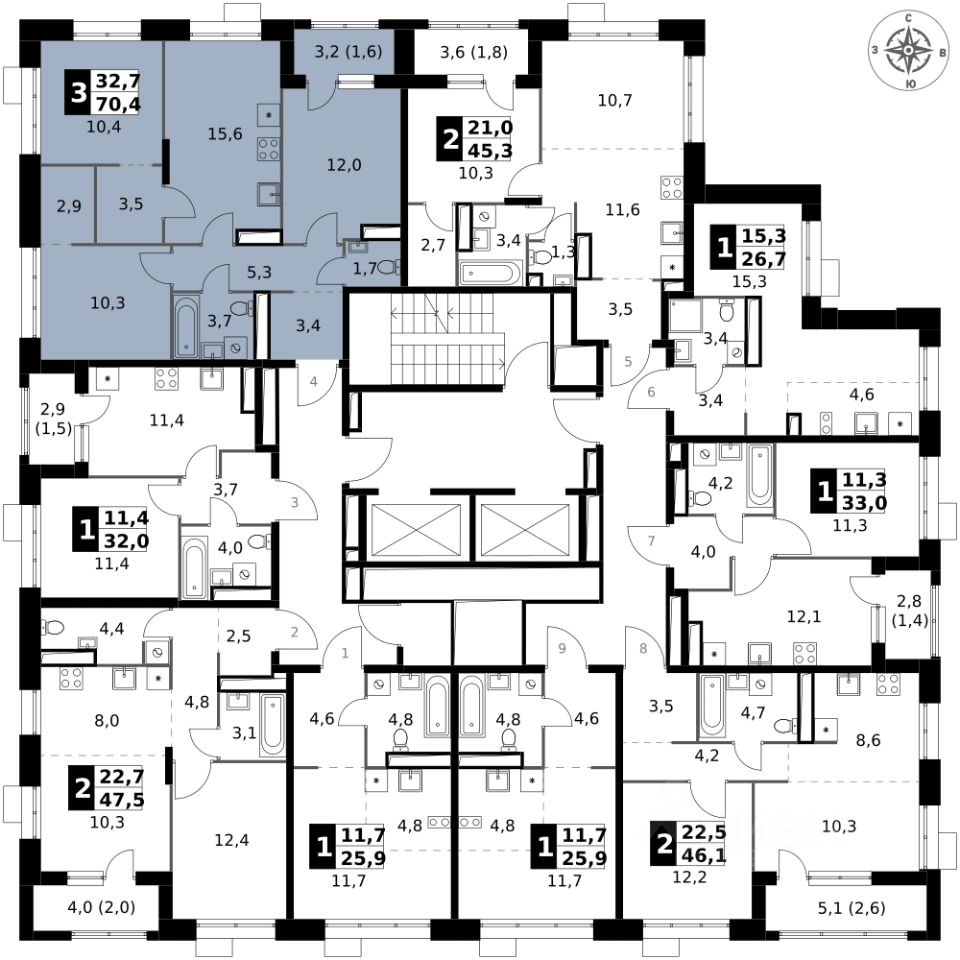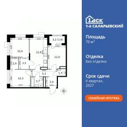 Продаётся 3-к квартира номер 786 общей площадью 70.4 кв.м. на 23-м этаже 25 этажного здания. Без отделки.