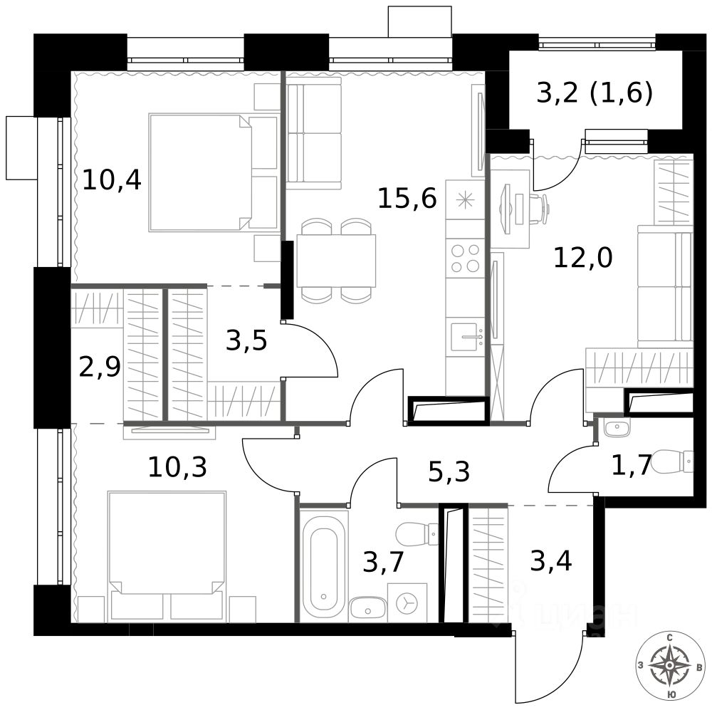 Квартира без отделки. Чистый холст для воплощения интерьера вашей мечты.
