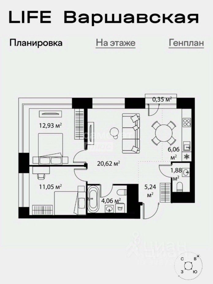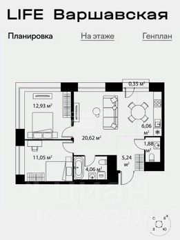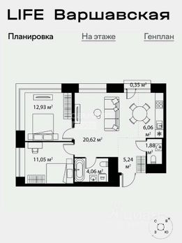 62,2 м² | 23 этаж | ЖК "Лайф Варшавская" - "Life Варшавская".