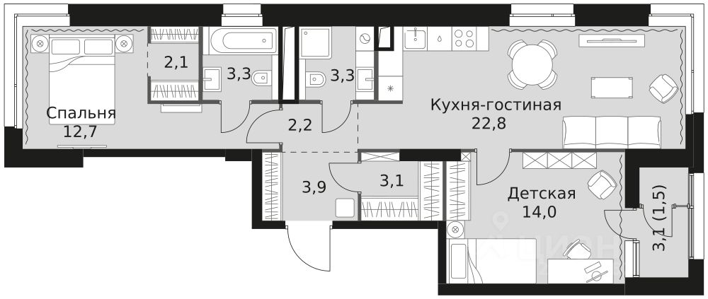 - Гибкая планировка - создайте пространство по своему вкусу.