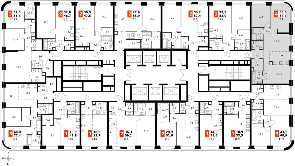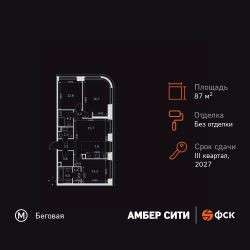 Продаётся 4-к квартира номер 360 общей площадью 87.7 кв.м. на 25-м этаже 46 этажного здания. Без отделки. Цена с учётом скидки.