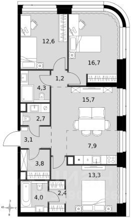 - Угловая планировка - больше пространства для ваших идей.