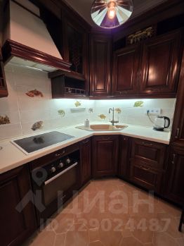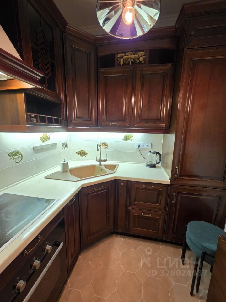 Кухня. Итальянский гарнитур из массива вишни и ореха, каменная столешница, встроенный холодильник, духовой шкаф и большая посудомоечная машина. Кухня, в которой хочется готовить и удобная рабочая поверхность.