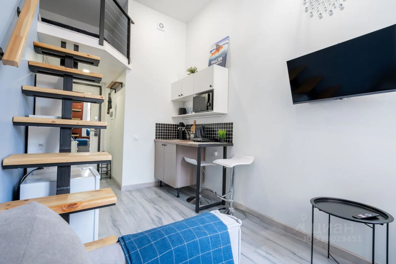 Студия 16 м² на втором этаже. Дизайнерский ремонт под ключ — продуманная планировка, качественные материалы, светлая отделка. Даже на компактной площади всё организовано максимально удобно и функционально.