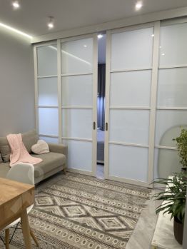 2. Гостиная со спальней, разделённые стеклянной перегородкой — 20 м²