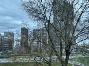 Апартаменты расположены на 4 этаже, панорамные окна на три стороны света обеспечивают хорошую освещенность и радуют красивыми видами на город.