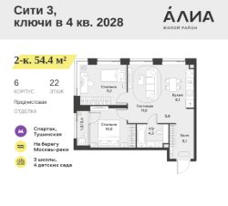 Продаётся 2-комнатная квартира 54.4 м². В жилом районе Алиа на 22-м этаже 28-этажного дома.