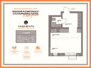 Красивая студия 29,1 м² в ЖК Саларьево Парк — редкий увеличенный формат в доме средней этажности в одном из самых востребованных жилых комплексов Москвы — ЖК Саларьево Парк.