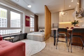 Главное преимущество — увеличенный формат студии, который встречается значительно реже стандартных планировок. Квартира расположена на комфортном 10 этаже 15-этажного дома, что особенно ценят покупатели, выбирающие баланс между панорамностью, тишиной и удобством.