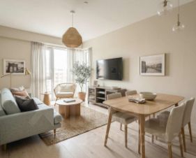 Функциональное пространство идеально подходит для комфортной жизни: просторная кухня-гостиная для отдыха и встреч, отдельная спальня, а наличие двух санузлов добавляет удобства в повседневной жизни.