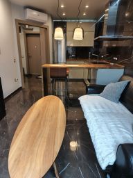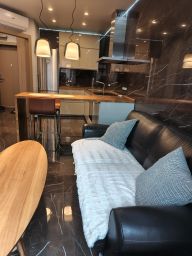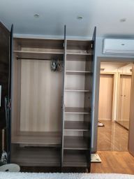 Жили сами и все покупали самое лучшее, пол с подогревом, бойлер ( кстати скрытый за мраморной панелью и его не видно- теплая вода бесперебойно даже в момент отключения), вся мебель из Икеи, наполнение квартиры качественное и надежное, все что на фото - это остается. Квартиру обустраивали максимально удобно, встроенные шкафы с вместительным наполнением и продуманной оргономикой, в цветовых решениях использованы дорогие натуральные оттенки мрамора, дерева и металла.