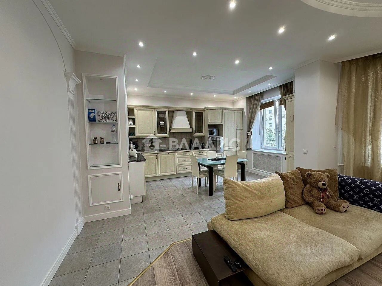Квартира расположена на втором этаже десятиэтажного монолитного дома, построенного в 2002 году. Высокие потолки (3 метра) создают ощущение свободы и пространства. Общая площадь квартиры составляет 114,9 кв. м, из которых 60 кв. м — жилая площадь, а 40 кв. м — просторная кухня.