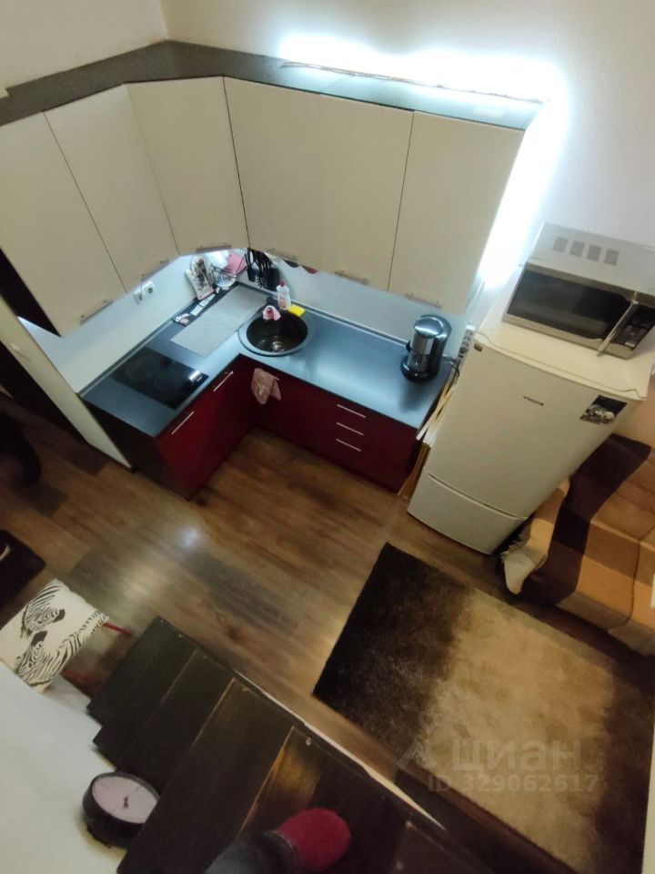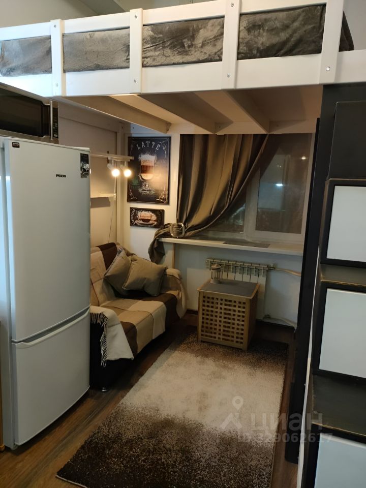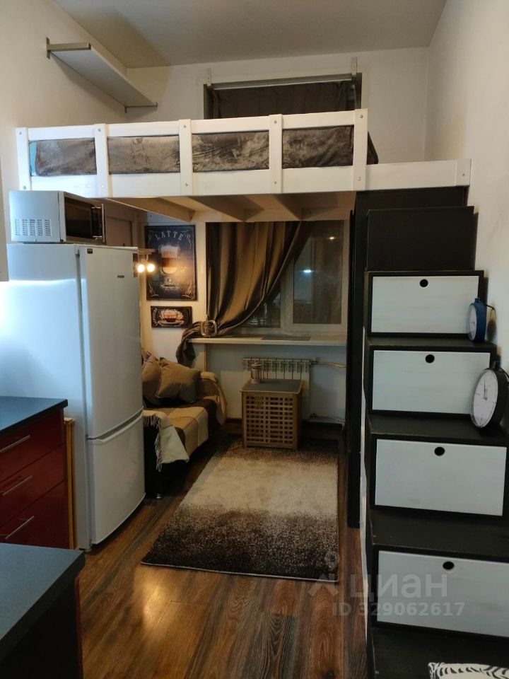 Общая площадь квартиры составляет 15.4 кв. м, жилая площадь — 10 кв. м, кухня — 3 кв. м. Квартира расположена на 5 этаже 6-этажного кирпичного дома, построенного в 1952 году. Высокие потолки — 3.2 метра — создают ощущение простора и света.