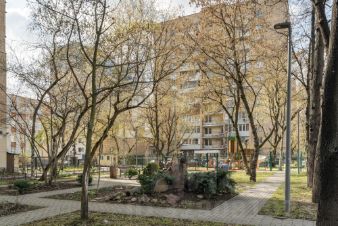 Двор с чудесным сквериком и цветниками, лавочками, мини-скульптурами, с детской площадкой и площадкой для выгула собак.