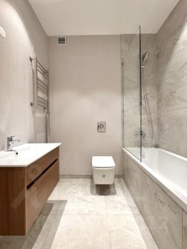 В квартире никто не жил. Ремонт новый, выполнен с использованием качественных отделочных материалов (инженерная доска, керамогранит). Санузлы полностью оборудованы сантехникой (Grohe, Vitra), установлены регулируемые теплые полы. Кондиционеры Haier в каждой комнате. В квартире установлены немецкие стеклопакеты фирмы Schuko, одни из лучших на рынке по надежности, тепло- и шумоизоляции. Потолки 2,85 м. Внутрипольные конвекторы. Во всех квартирах ЖК сделана дополнительная шумоизоляция. Круглосуточная охрана на территории комплекса. Квартира расположена в корпусе В3.