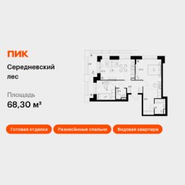 Продаётся 2-комн. квартира площадью 68,3 кв.м на 12 этаже 16 этажного дома (Корпус 2.1.2, Секция 2) проекта ПИК Середневский лес. Светлый просторный подъезд на уровне земли, функциональная планировка, большие окна, c отделкой.