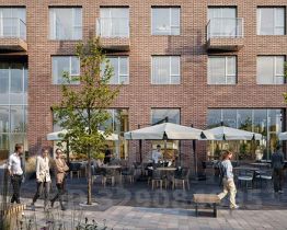Архитекторы вдохновились локацией проекта: природные оттенки и активная пластика корпусов напоминают рельефные выступы на берегу, а окна отражают водную гладь, визуально объединяя дома с природой.