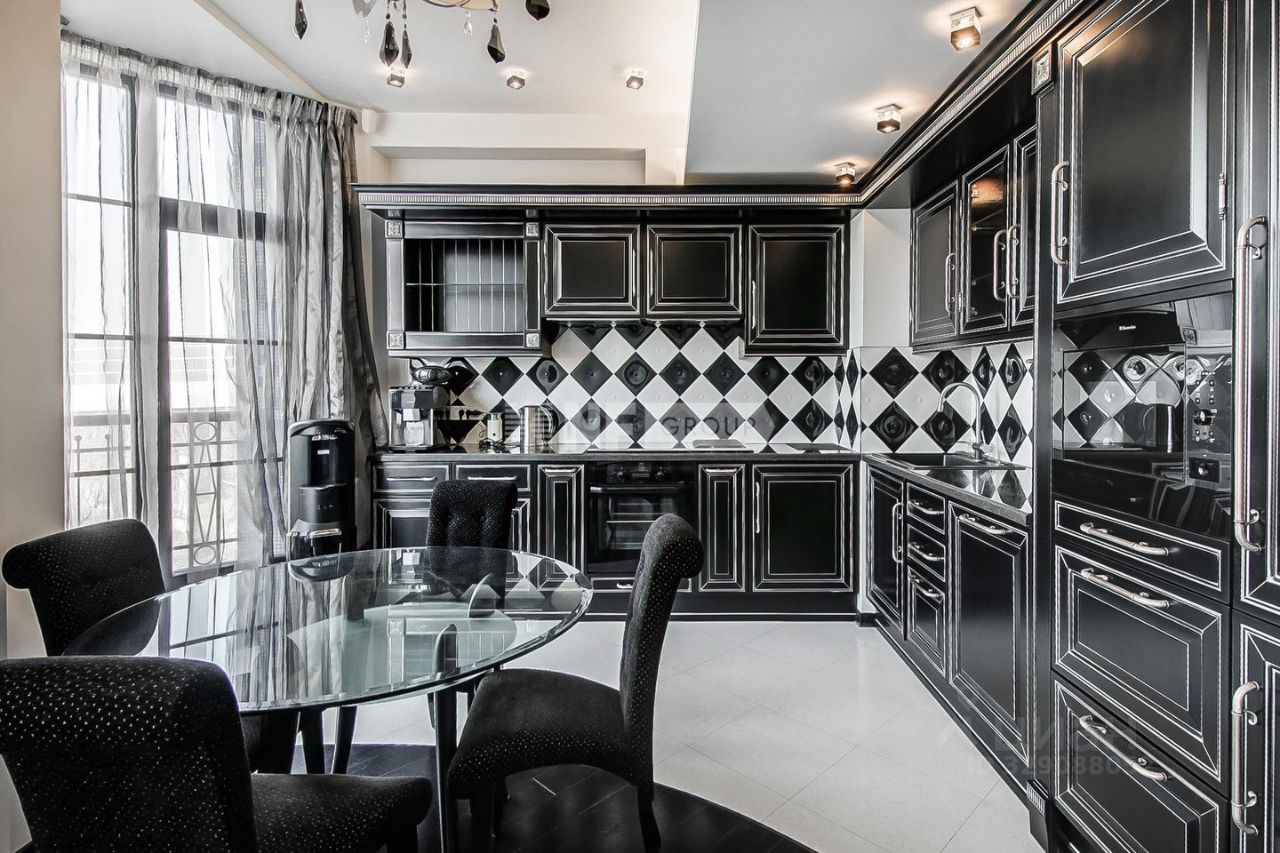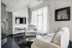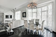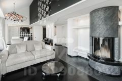 Интерьер выполнен в классическом стиле с авторскими элементами: паркет, декоративная лепнина, камин и выразительные световые сценарии. Пространство полностью меблировано и оснащено техникой, продуманы зоны хранения и комфортное зонирование.