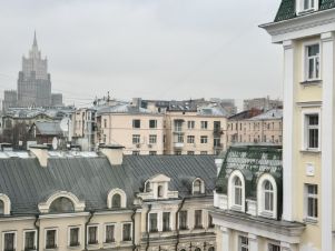 В квартире выполнен дизайнерский ремонт. На кухне остается вся необходимая мебель и бытовая техника Miele. Паркет Panga-panga. Планировка удобная и функциональная: две спальни, кабинет, кухня-гостиная и два санузла. Большая застекленная лоджия. Окна на три стороны - прекрасный вид на Зачатьевский монастырь, Храм Христа и здание МИДа.
